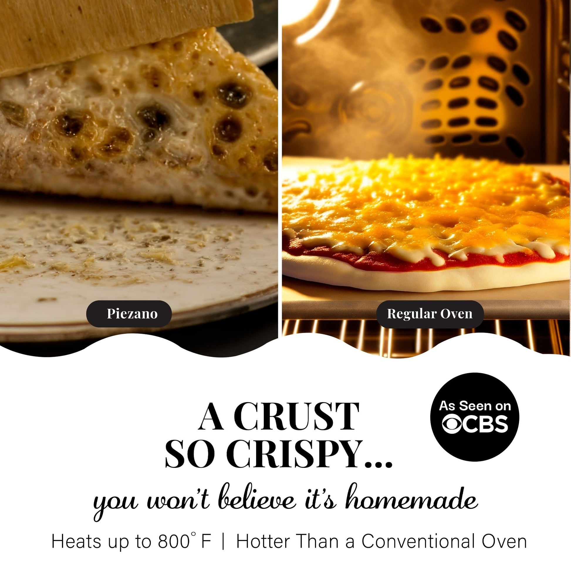 Perfect Pizza Every Time: Achieve restaurant-quality pizzas with ease. The 12' ceramic stone delivers a crispy, golden crust, while the dual temperature control allows for precise baking from top to bottom. Cook your pizza in under 6 minutes at temperatures up to 800°F.